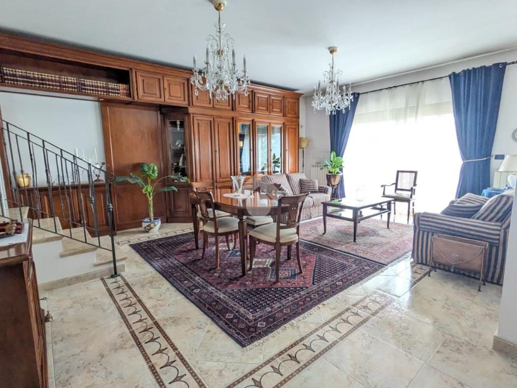 Realizzata con materiali antisismici, la villa si sviluppa su tre livelli: al piano terra troviamo salone ampio e luminoso, cucina abitabile, due camere e bagno con finestra; il primo piano ospita altre due camere, due bagni finestrati, un ripostiglio con possibilità di ricavare una cabina armadio, un balcone panoramico vista mare; il seminterrato, completamente isolato e con altezza di 3 metri, comprende sala hobby con termocamino, angolo cottura, bagno sempre con finestra, ripostiglio e accesso diretto al box auto di ca 80 mq per cinque vetture.